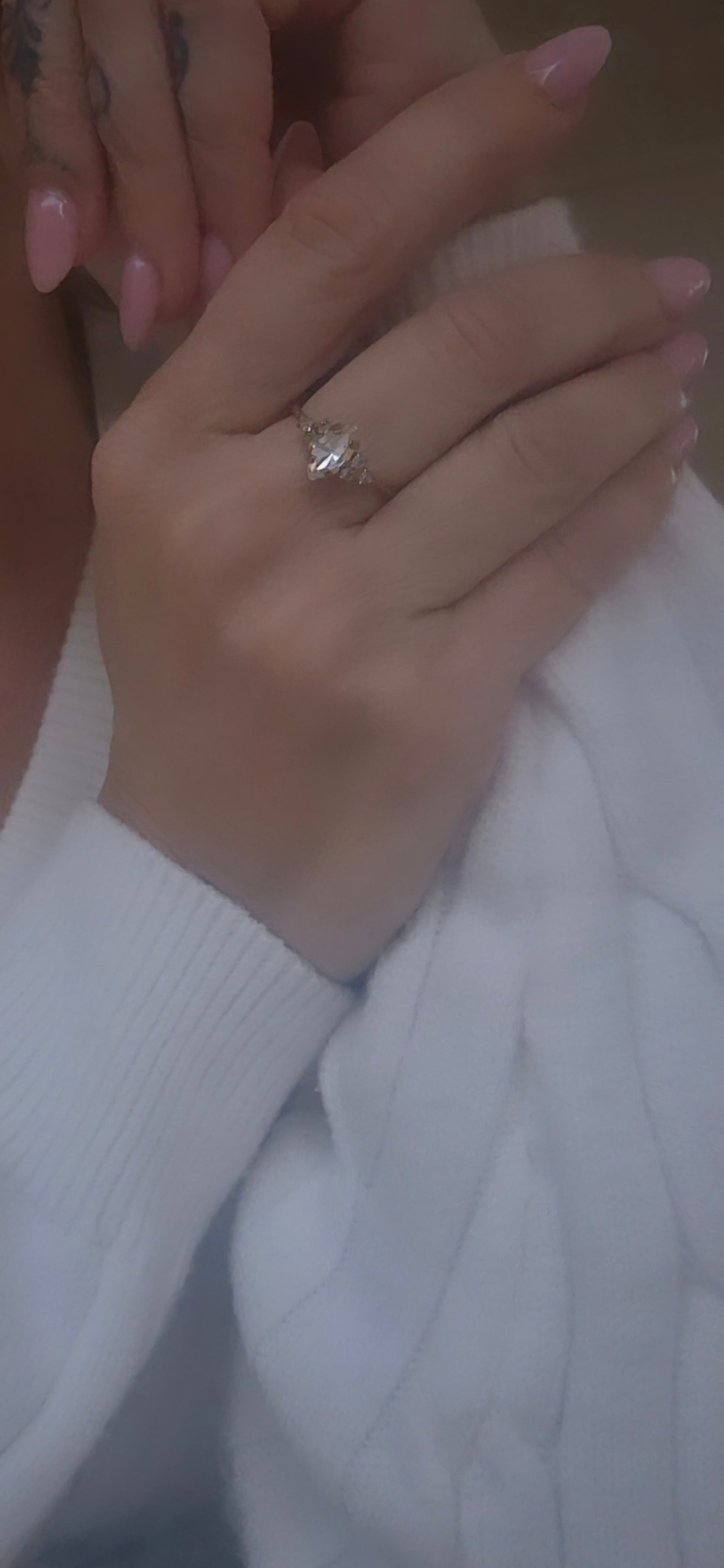 טבעת משובצת אבן קריסטל סירה קטנה 10 על 5 מ"מ במרכז וזרקונים קטנים בצדדים, ציפוי זהב, הטבעת פתוחה בחלקה האחורי וניתן להתאים את המידה שלה לאצבע
