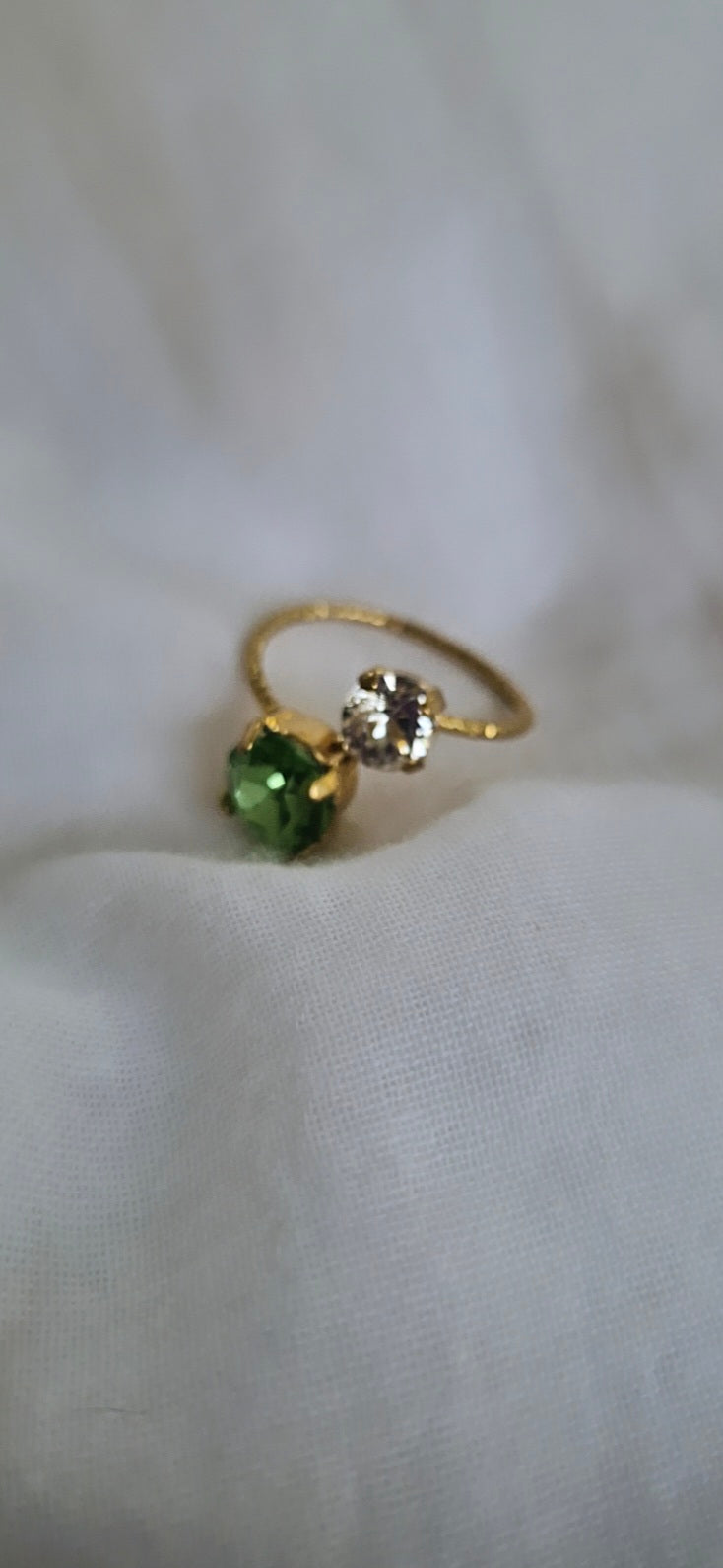 טבעת בציפוי זהב משובצת אבן קריסטל ואבן ירוקה