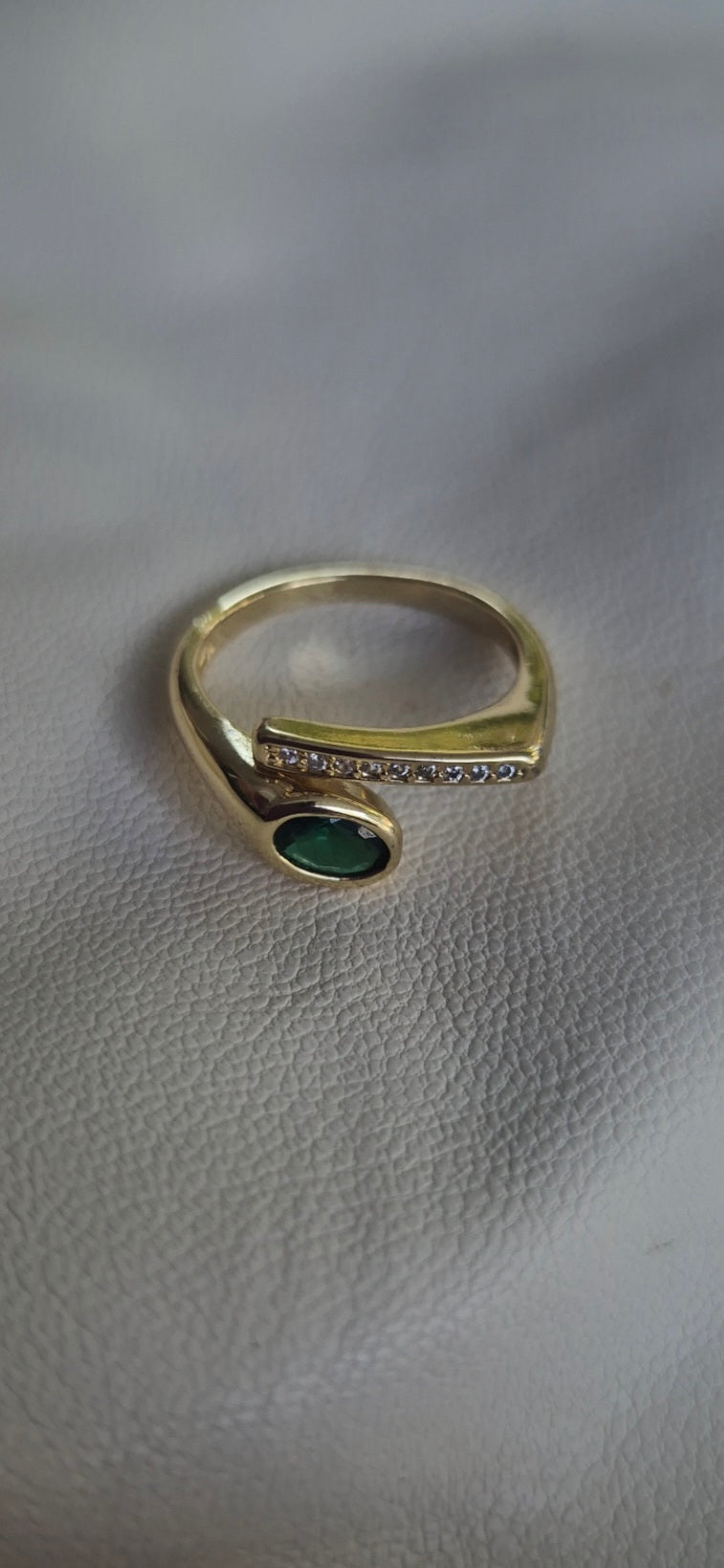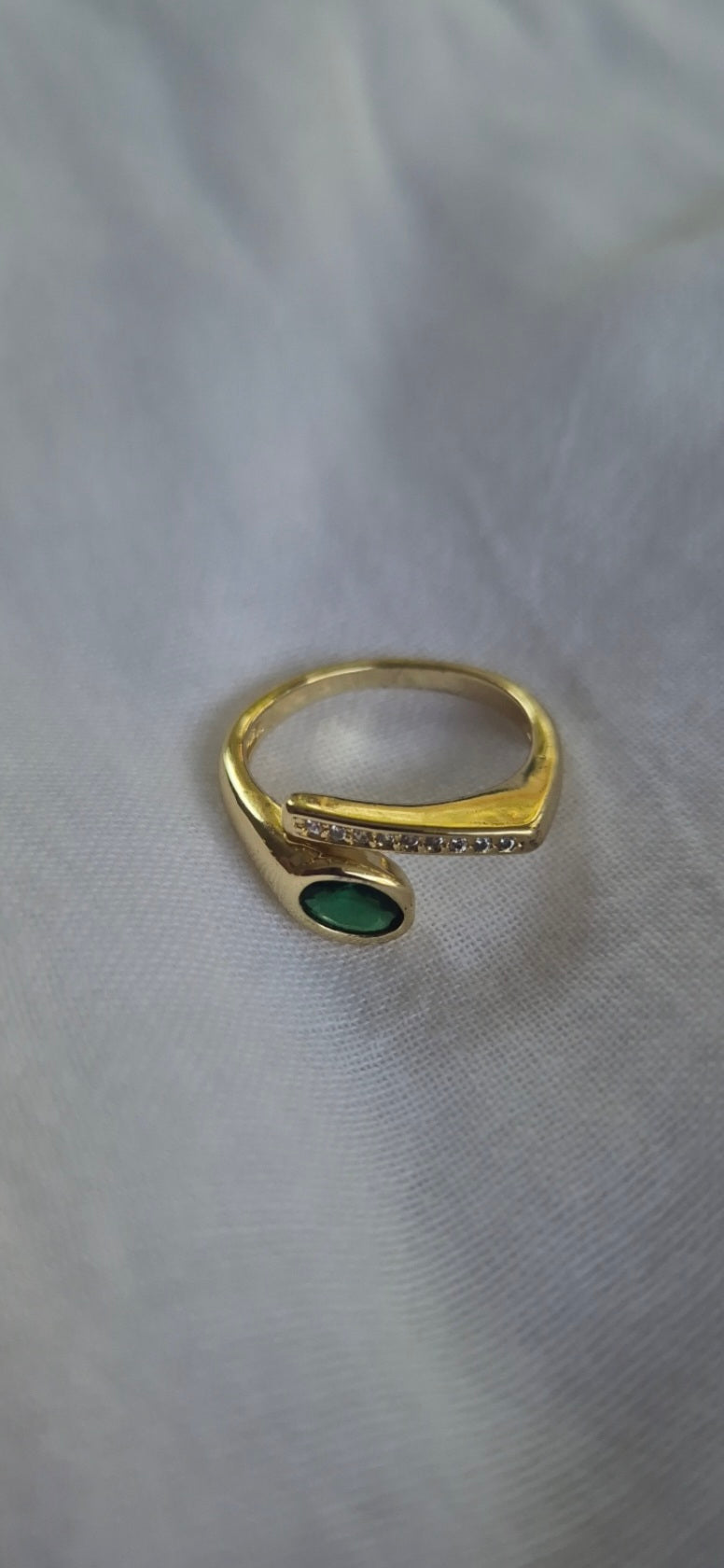 טבעת בציפוי זהב משולבת זרקונים ואבן ירוקה