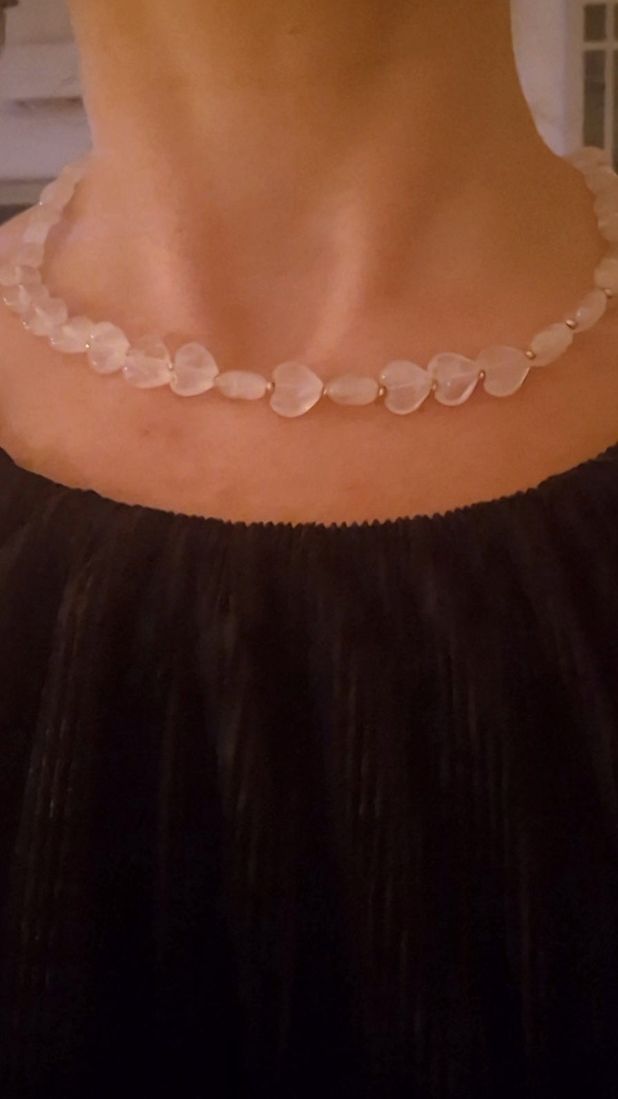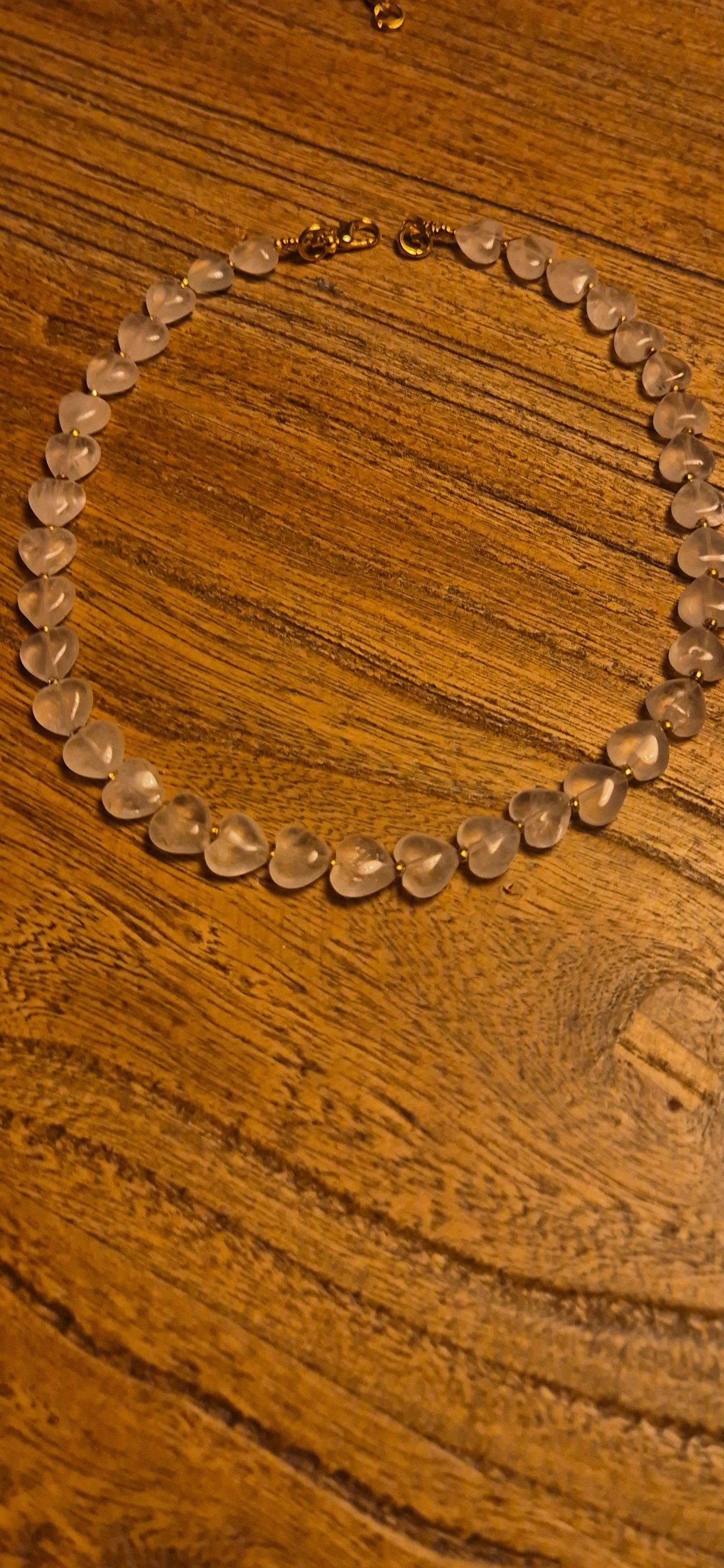 שרשרת אבני קווארץ לבבות בצבע ורוד בהיר שקוף