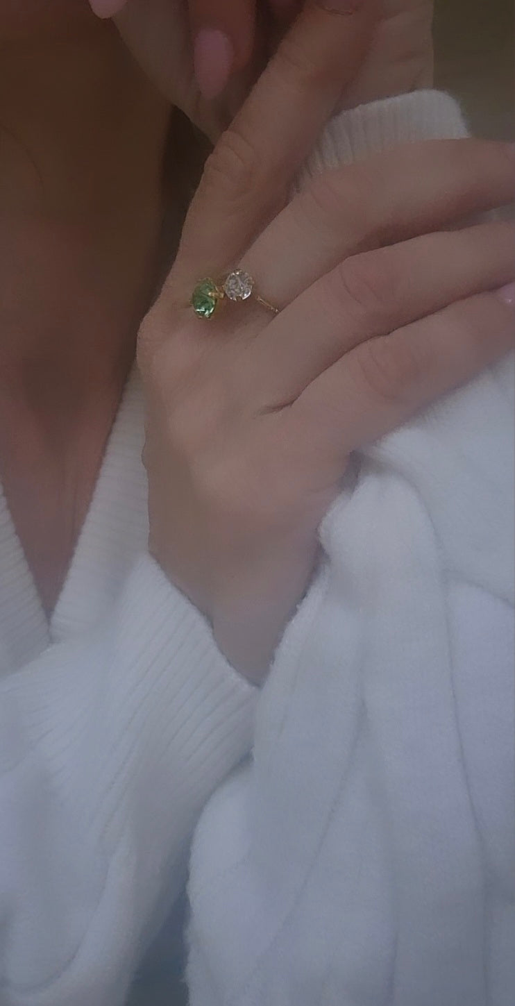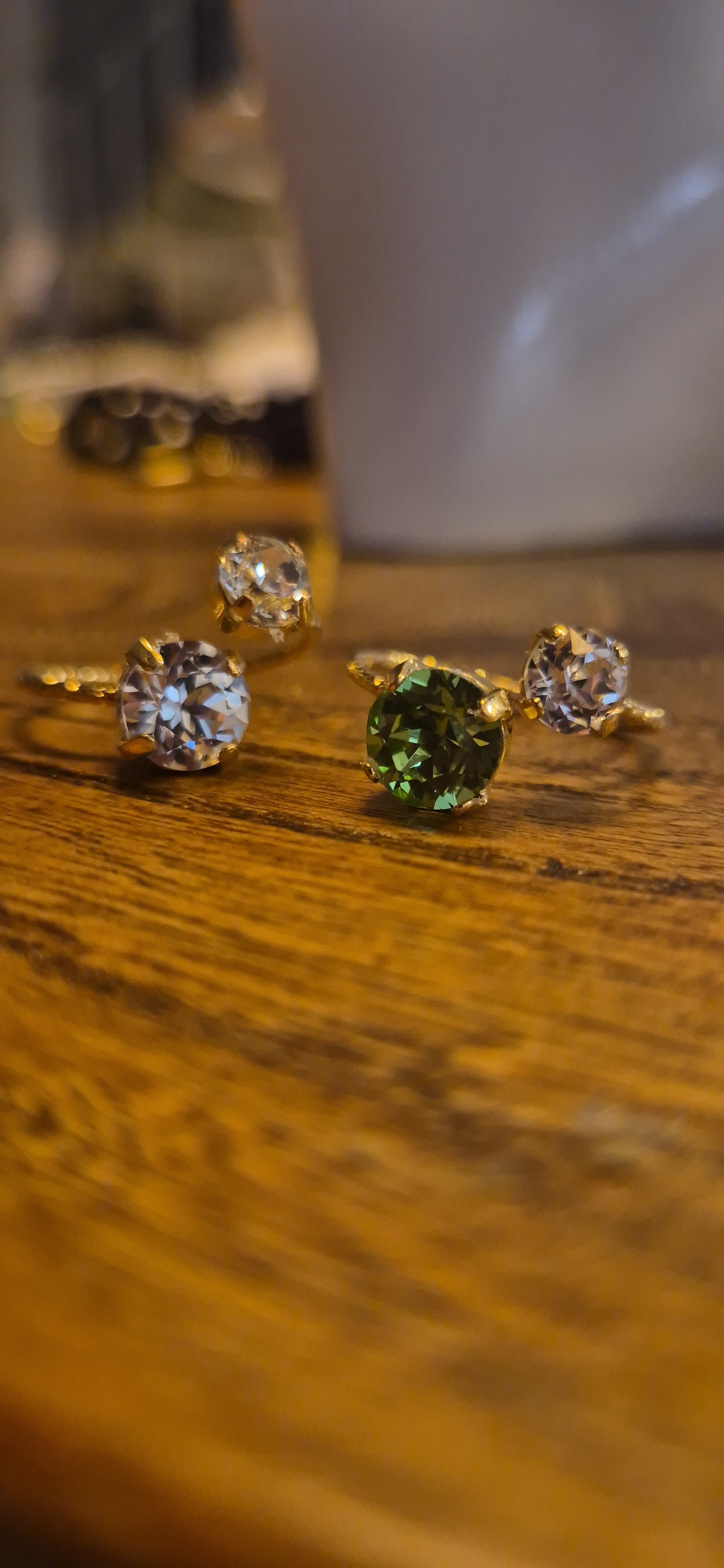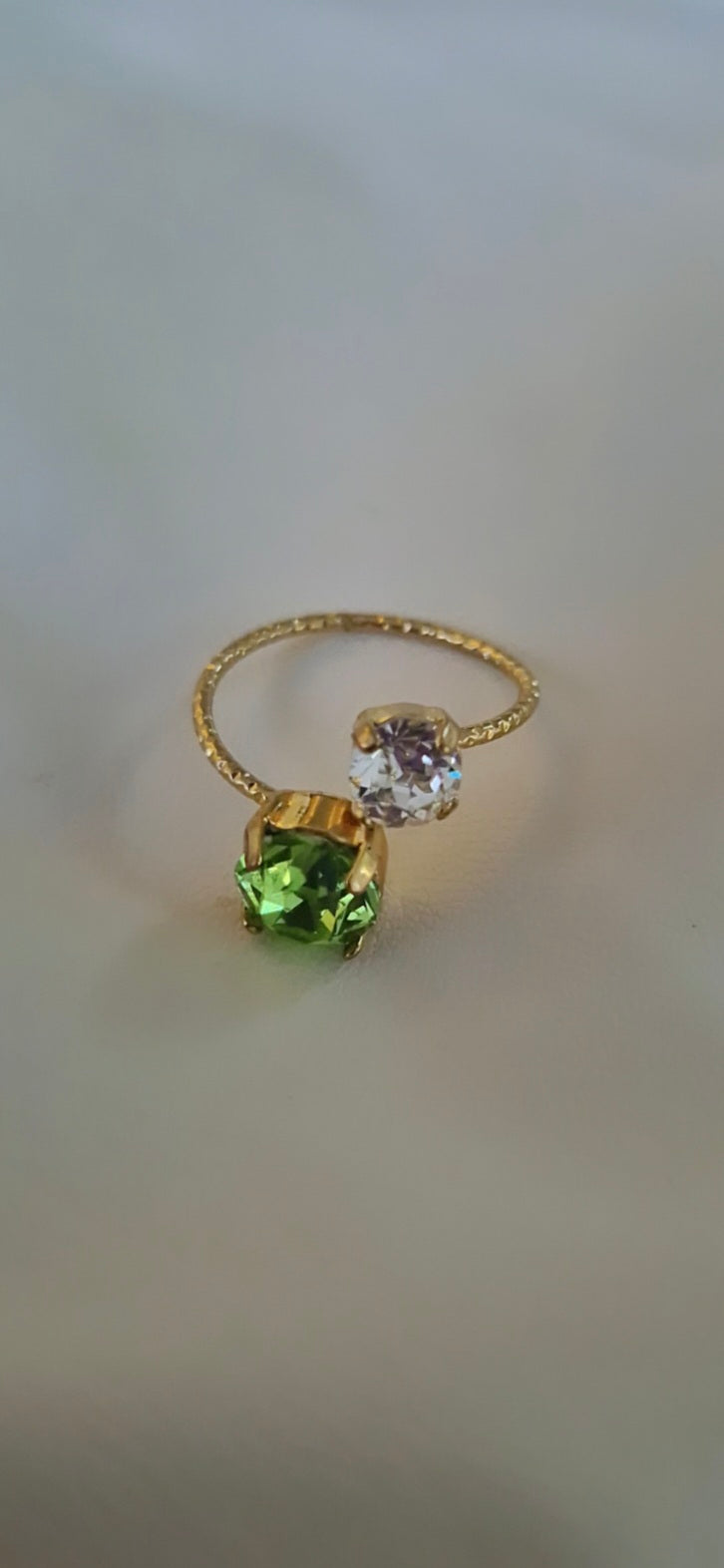 טבעת בציפוי זהב משובצת אבן קריסטל ואבן ירוקה