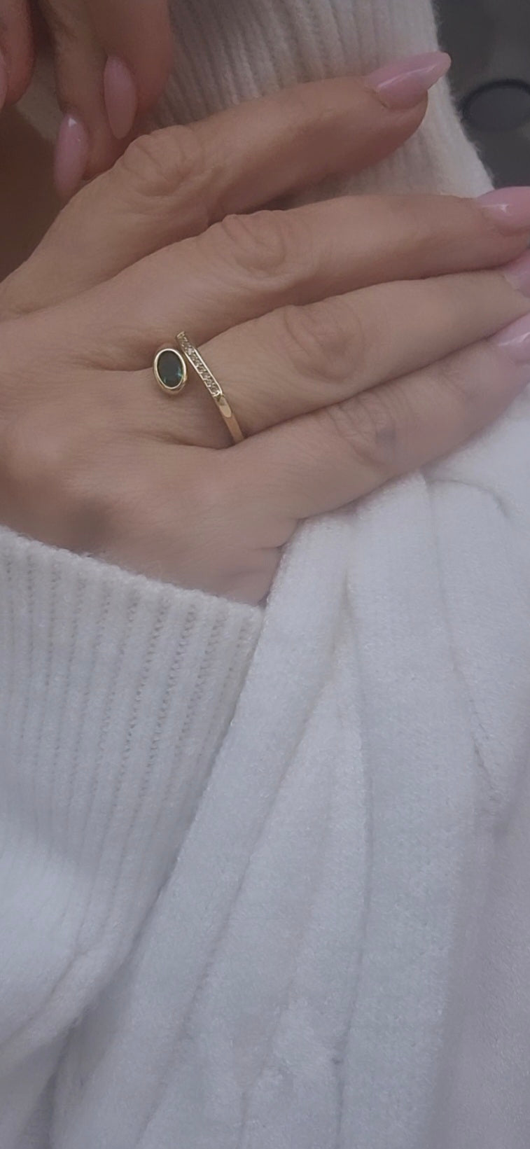 טבעת בציפוי זהב משולבת זרקונים ואבן ירוקה