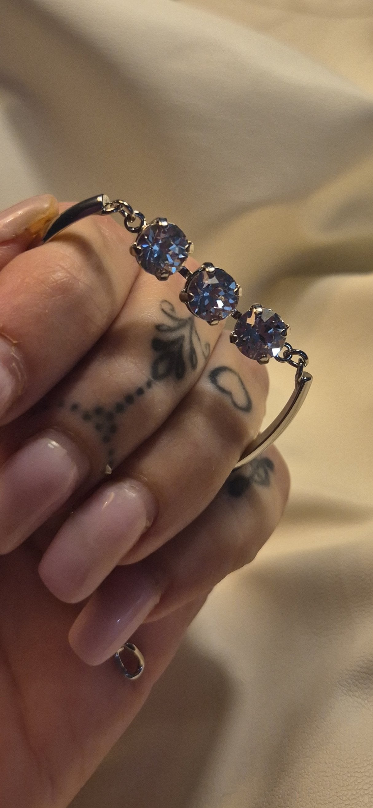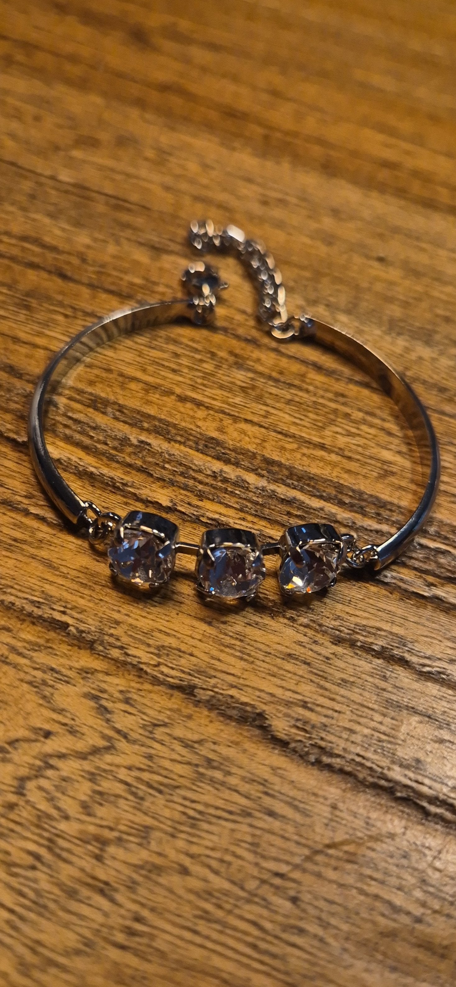 צמיד חישוק נפתח, עם 3 אבני קריסטל, צבע כסף