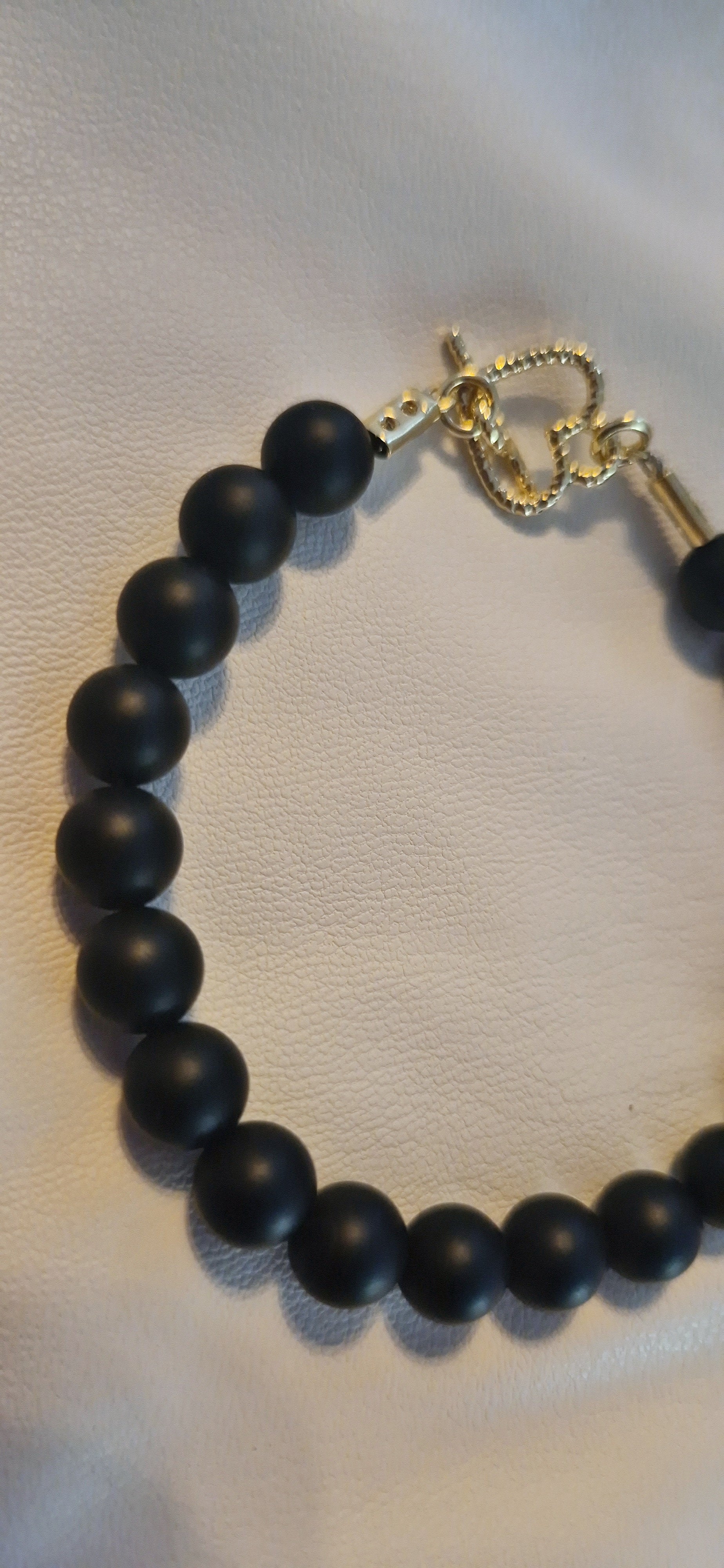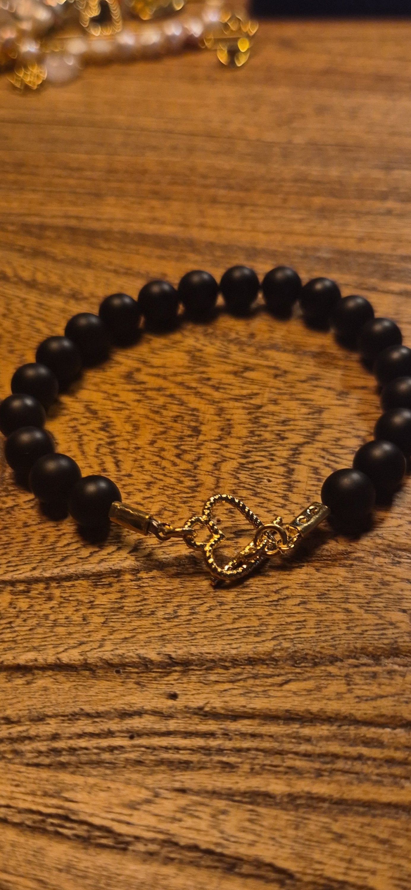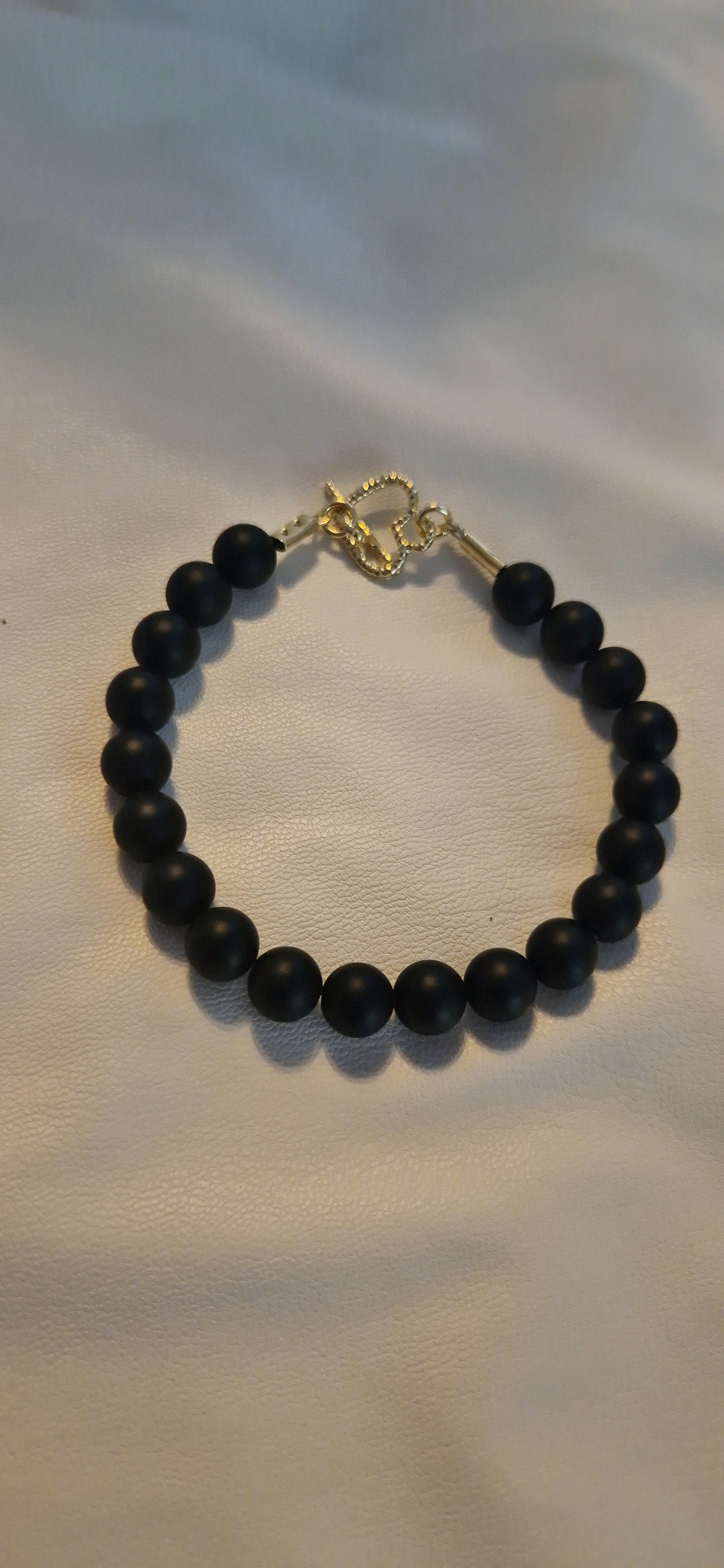 צמיד חרוזי אבן אגת שחורה עם סוגר טי לב
