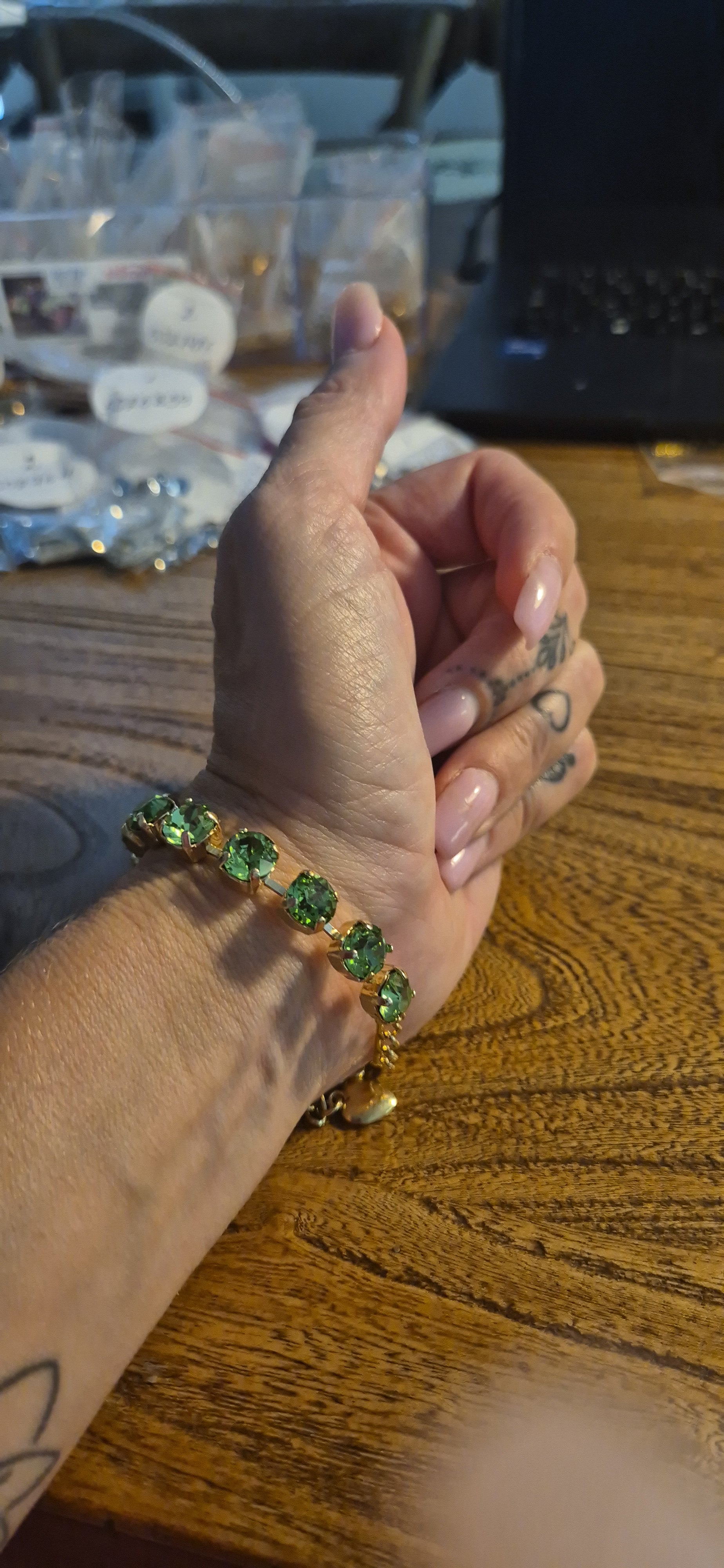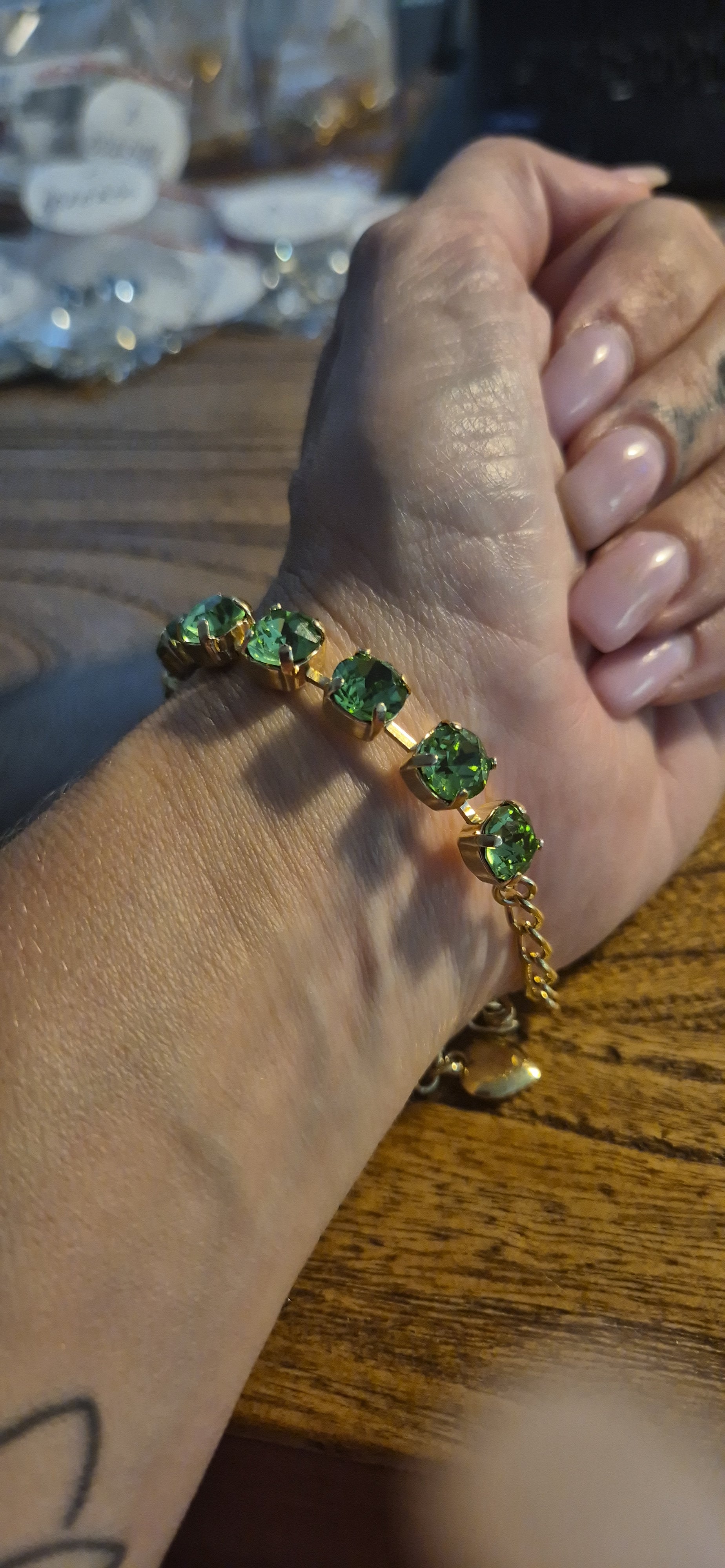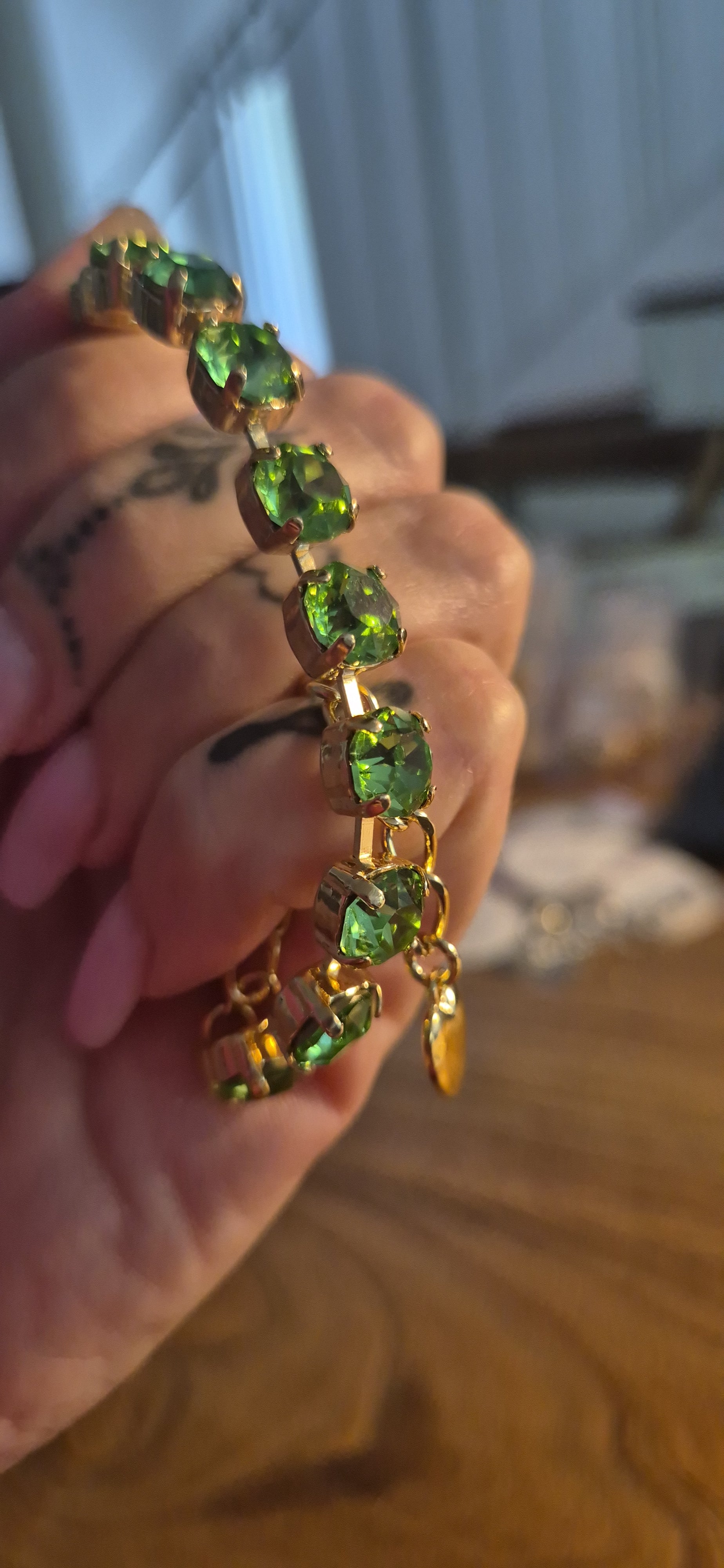 צמיד משובץ אבני קריסטל ירוקות, ציפוי זהב