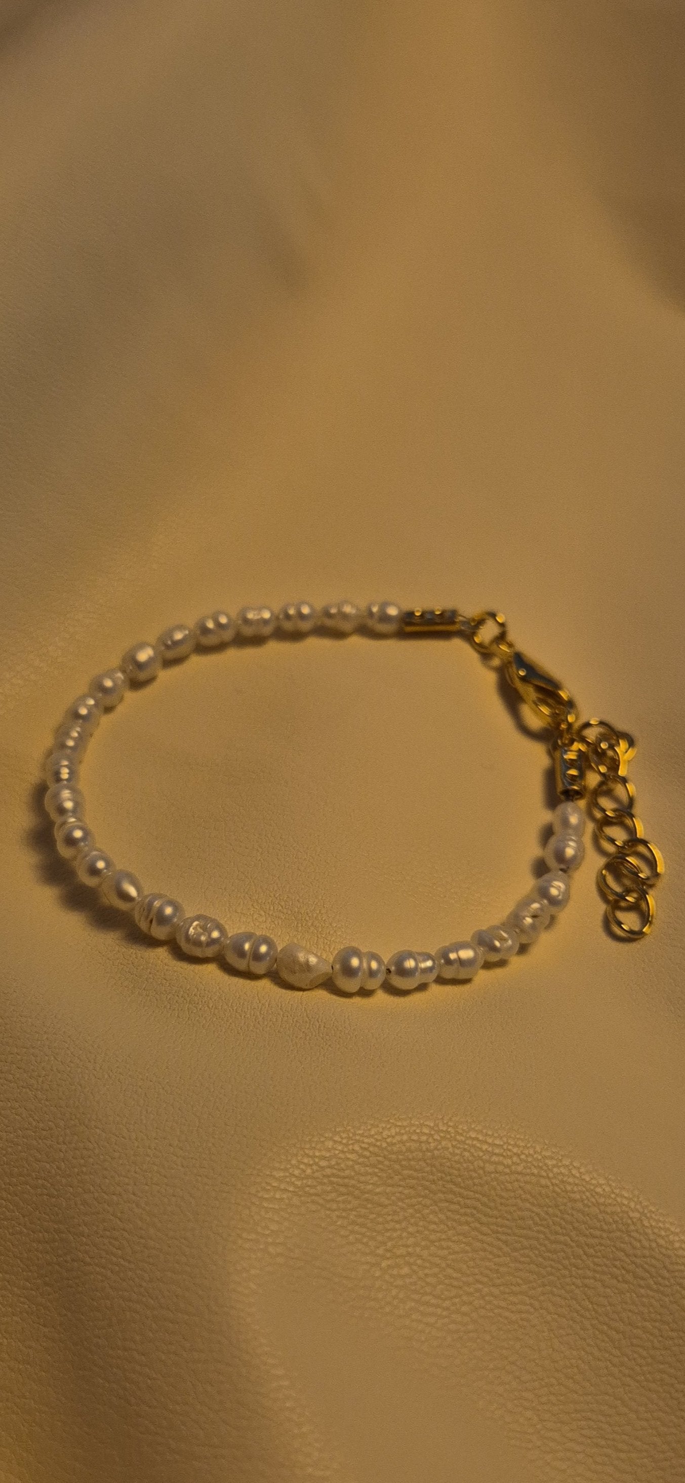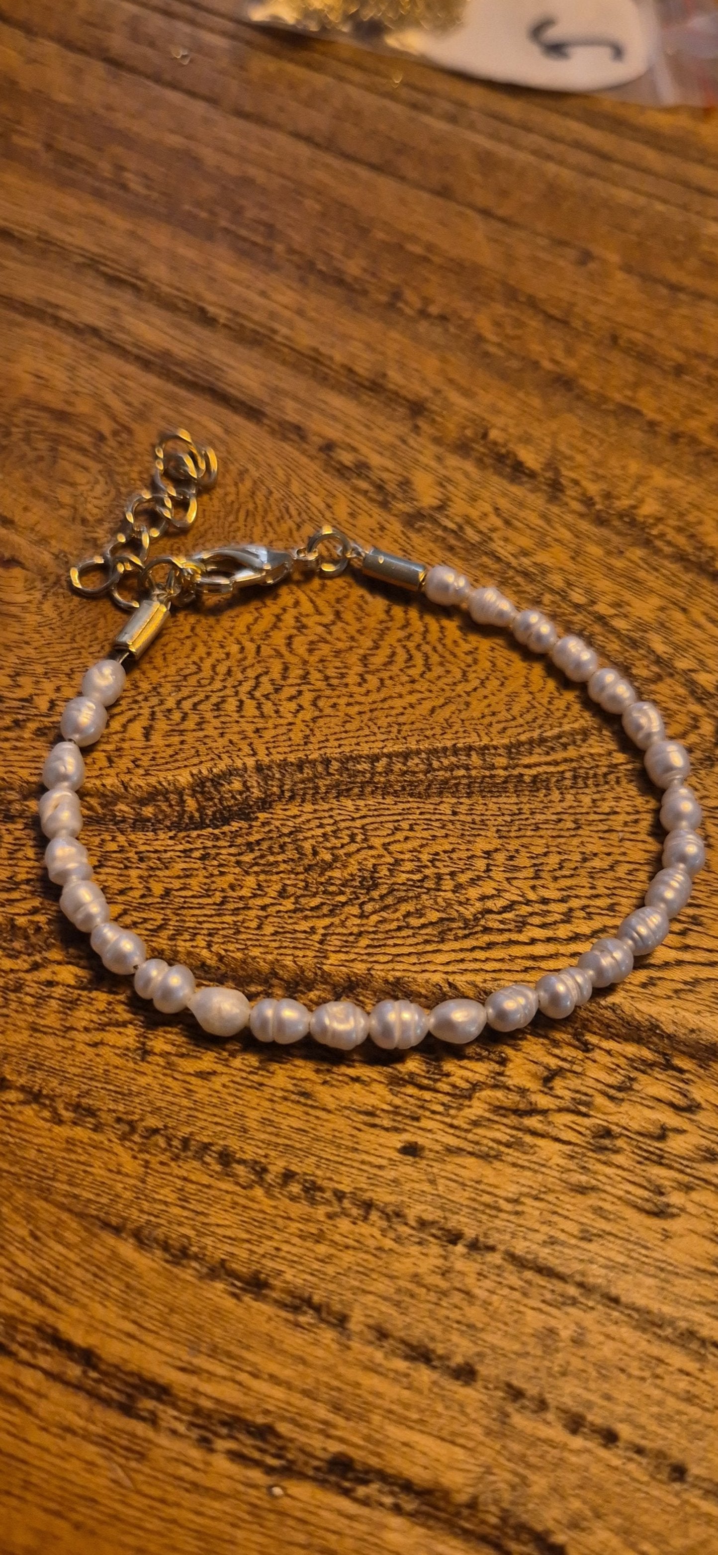 צמיד פנינים טבעיות קטנות לבנות, אורך הצמיד 18 ס"מ עם הארכה של עוד 5 ס"מ