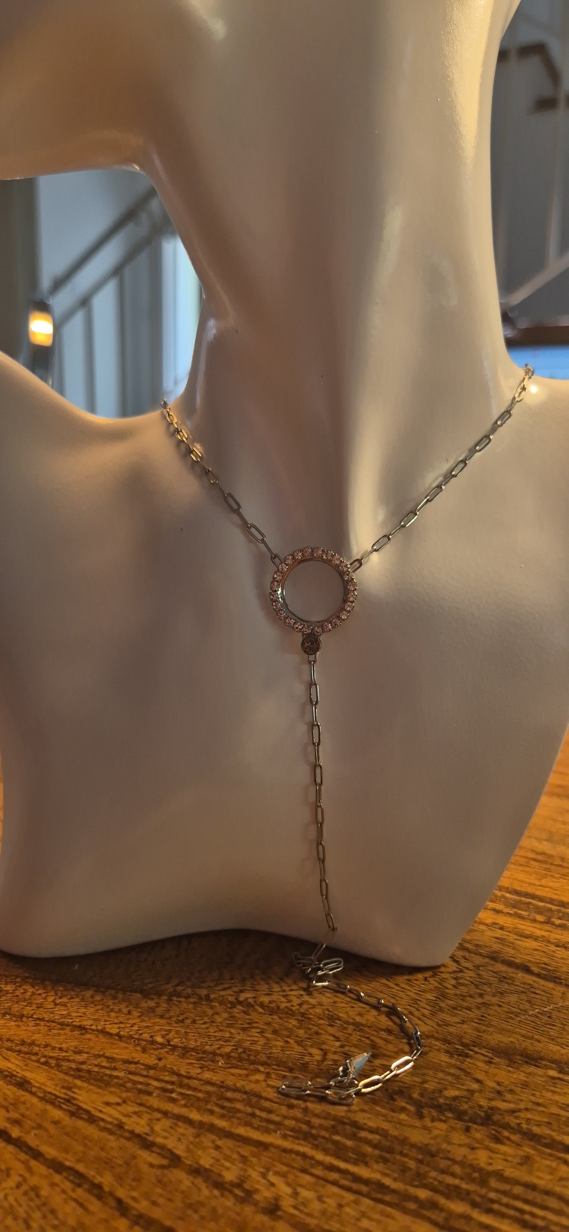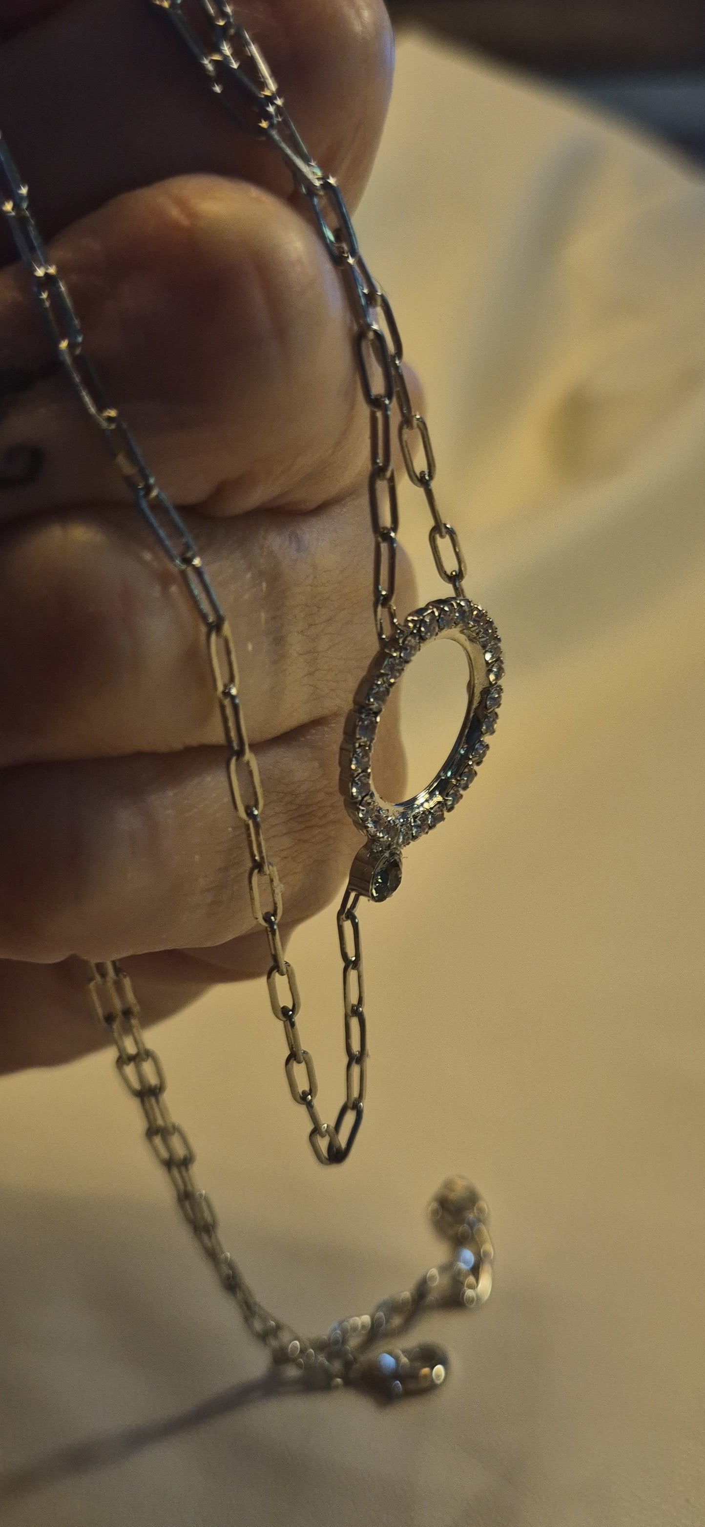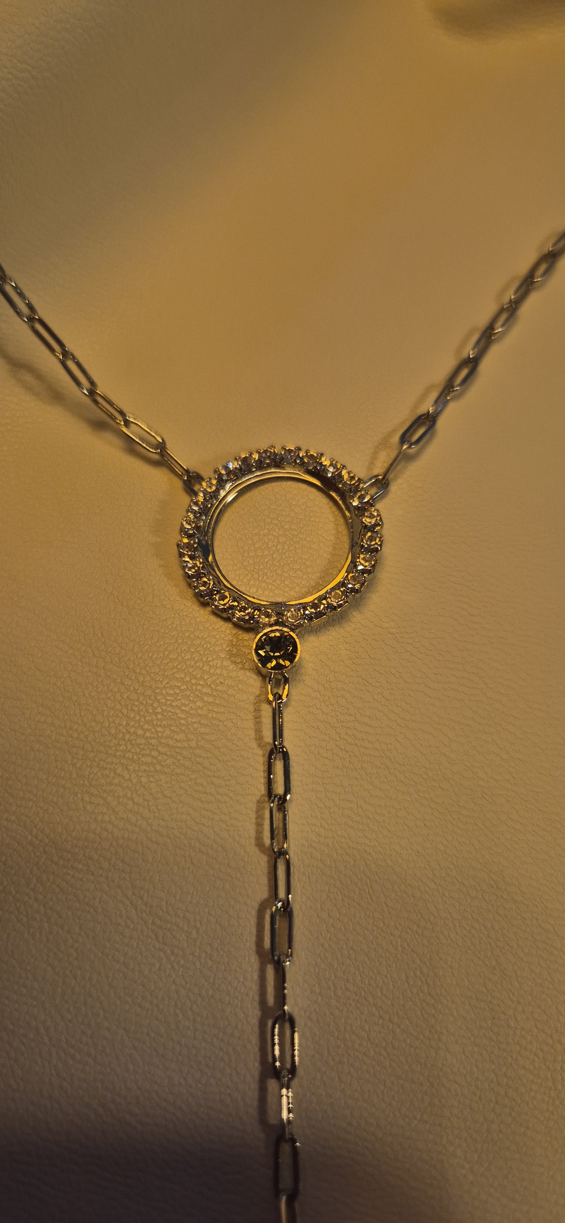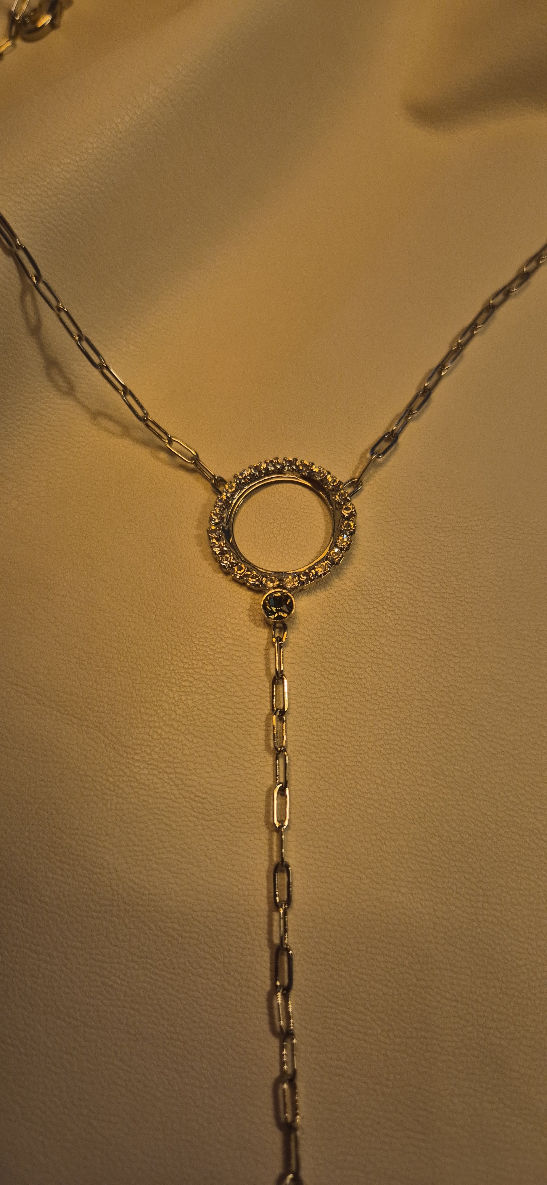 שרשרת עדינה, עם מעגל זרקונים ושרשרת נשפכת, צבע כסף